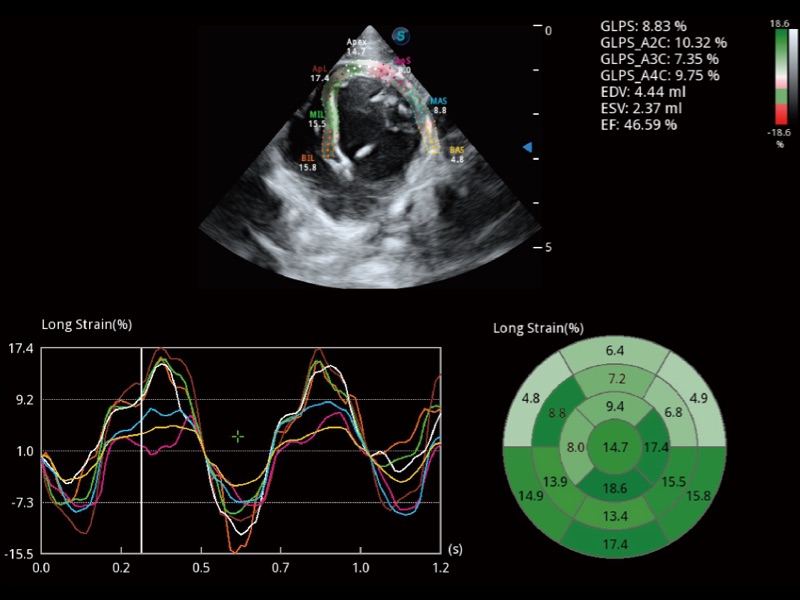 实时用颜色表示心肌组织运动,观察和定量组织的运动情况,对快速检测与评估心肌的灌注和活性、电传导及心肌收缩和舒张功能等均能提供重要的诊断信息。